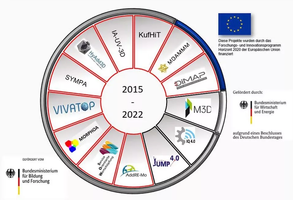 Die Digitalisierung, insbesondere die unter „Industrie 4.0“ zusammengefasste Form des gewerblich genutzten „Internet der Dinge“, gewinnt dabei für die Fertigung von Prototypen und Kleinserien massiv an Bedeutung. cirp begleitet diese Entwicklungen nicht nur, sondern gestaltet sie aktiv mit. Das erreichen wir in enger Zusammenarbeit mit unseren Kunden, Lieferanten sowie einem über die Jahre beachtlich gewachsenen Netzwerk aus Instituten und internationalen Forschungseinrichtungen. Ein wichtiger Baustein dieser Forschungsaktivitäten sind Verbundprojekte. Hier treiben Institute gemeinsam mit klein- und mittelständischen Unternehmen oder auch ausgewählten Großunternehmen spezifische Innovationsthemen so voran, wie es kein Partner allein könnte. Diese Forschung ausgewählter, vielversprechender Vorhaben und Verbünde wird öffentlich gefördert.